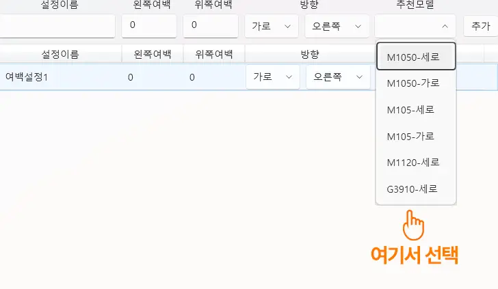 #4-1 사용할 프린터가 추천모델에 해당될 경우 추천모델 목록에서