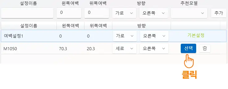 #4-3 추가된 목록에서 [선택] 버튼 클릭으로 기본설정으로 만듬