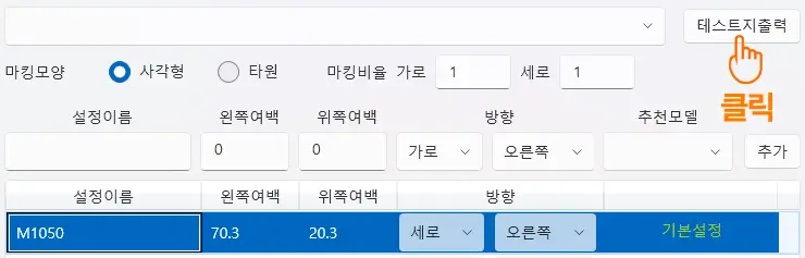 (설정시 A4용지로 [테스트출력] 후에 위치를 확인후에 OMR용지로 진행)